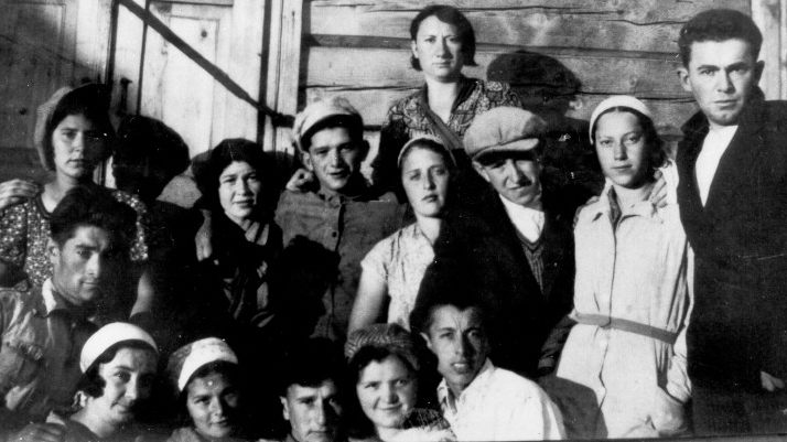 Members of the He - Chaluts Zionist youth movement from the "Ha - Boneh" pioneering training urban commune (kibbutz hachshara) in Linkuva. Photographed in 1934 Photograph from Archives of the Ghetto Fighters' House (http://www.gfh.org.il/english/) with permission No persons identified by Simon Civjan.Photograph originally obtained from Haviva Teheran Strauss
