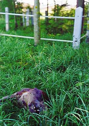 Pig's head at the site of mass killing of women and children.Linkuva September 1994Photograph by Eliezer Girsh