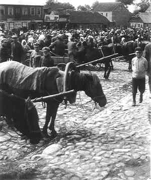 Market day in Linkuva, 19xxFrom archive of Saul Issroff. Original now in USHMM Washington. Copyright reserved